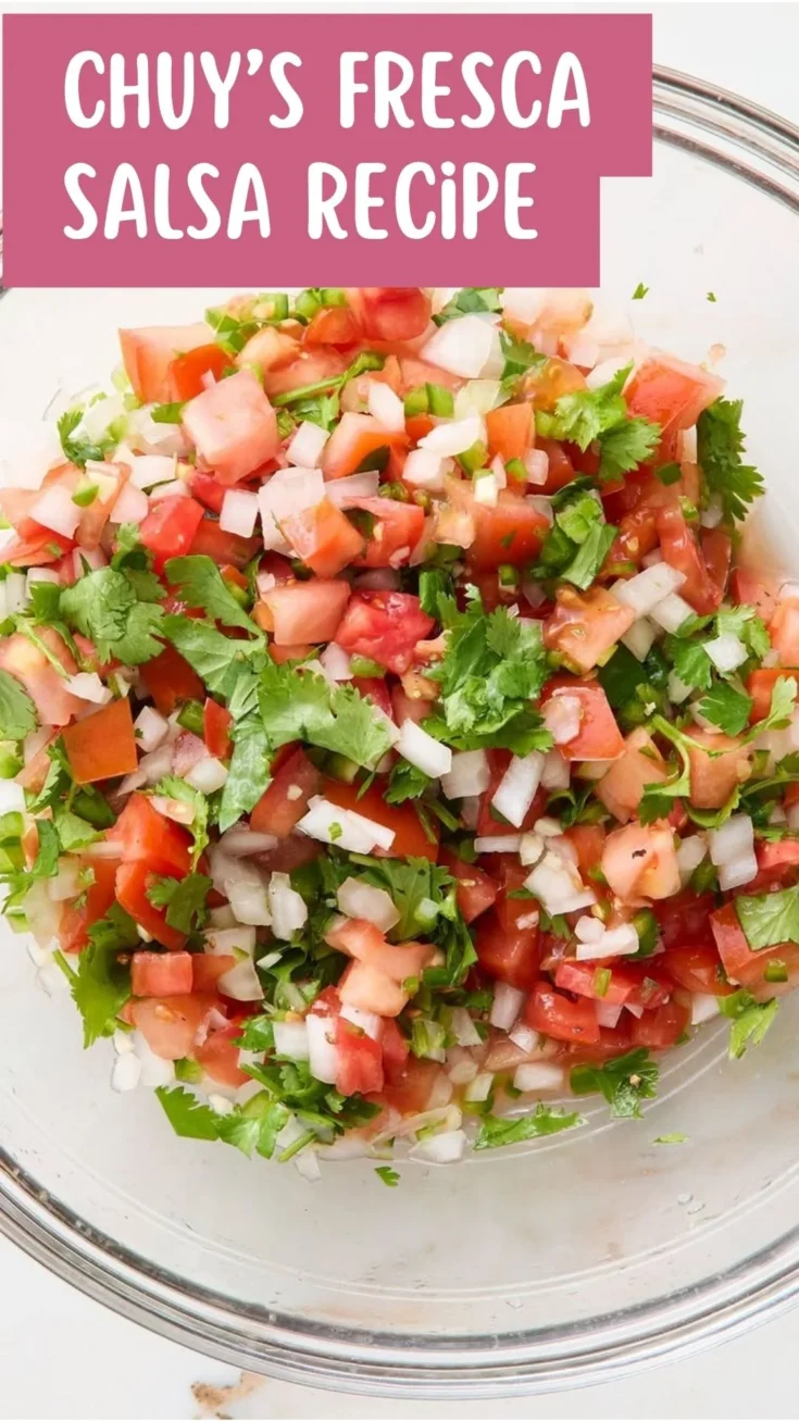 Whether you’re hosting a fiesta, prepping for taco night, or simply want fresh salsa with tortilla chips or nachos, this homemade Chuy’s salsa fresca delivers authentic taste in minutes and pairs perfectly with green chile rice for a complete Tex-Mex experience.